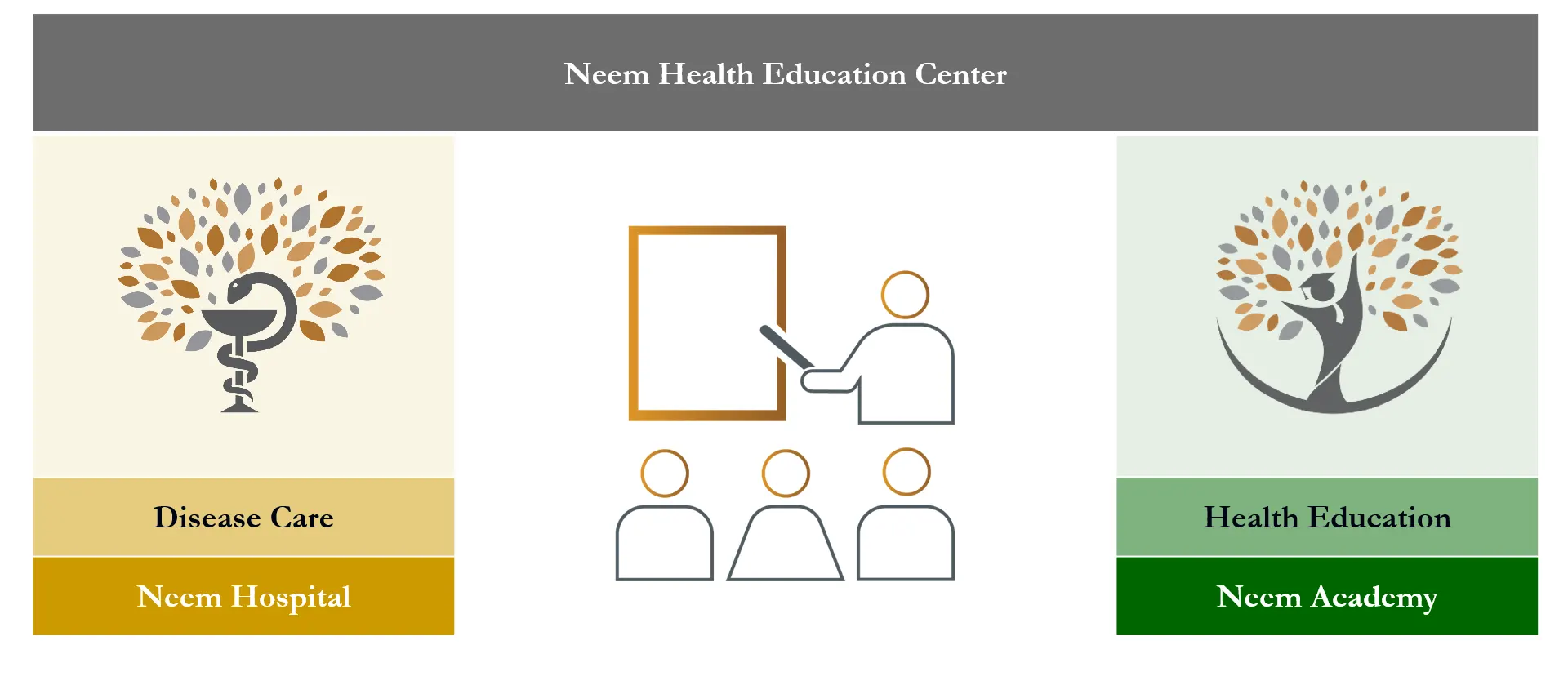 Together with Neem Academy, Neem Hospital also takes on the important role in (Public) Health Education, as the Neem Health Education Center; we are empowering patients & their families, as well as health care worker, to take control of their Body & Soul by providing important information on wellness, beauty, health & longevity. This helps patient, families & the community to change their impression of a traditional hospital for disease diagnosis and cure, to an institution where they can learn about Health and staying healthy, and if sick how to get health the best and fastest way again.